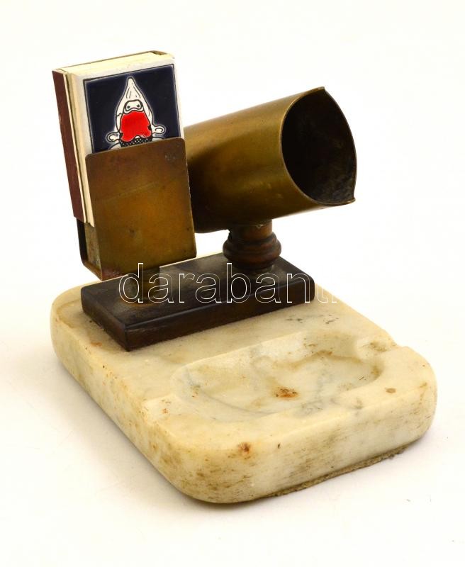 Réz gyufatartó, alabástrom alapon, 13x10x7 cm