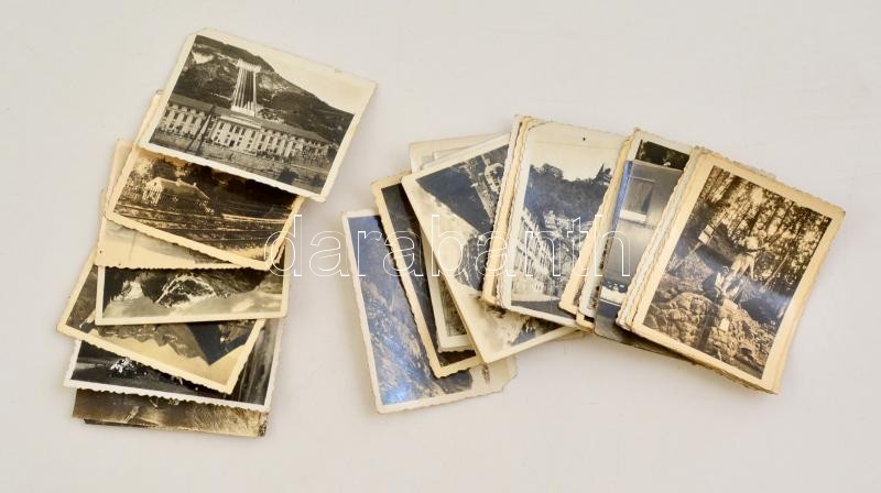 cca 1940 Vegyes fotó tétel, összesen 38 db, közte turista fotók, városképek, Körösmező, Melk, Bolzano, vízerőmű, 5,5x8,5 cm