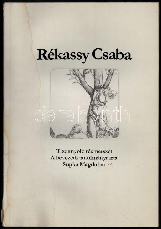Rékassy Csaba. Tizennyolc rézmetszet. A bevezető tanulmányt írta Supka Magdolna. Bp., 1981, Corvina. Kiadói papírkötés, foltos borítóval, kis szakadással a gerincen.