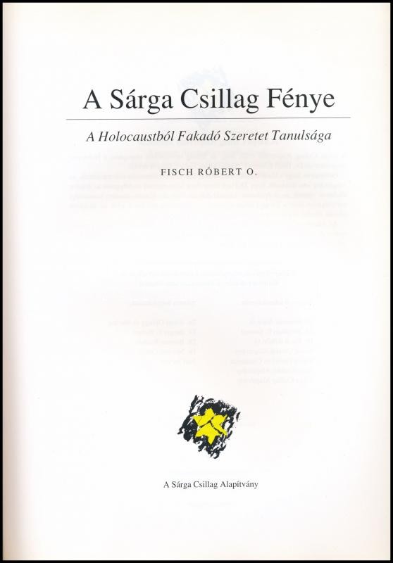 Fisch Róbert O.: A Sárga Csillag Fénye. A HOlocaustból Fakadó Szeretet Tanulsága. h. n., 1998, Sárga Csillag Alapítvány. Kiadói papírkötésben.