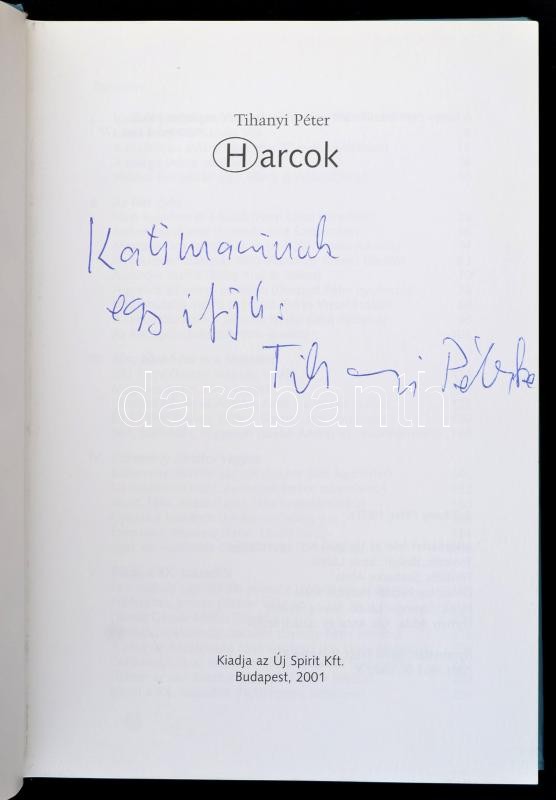 https://www.darabanth.com/en/322-Online-auction/322.0/Books/Books-Other-rarities~1000016/Tihanyi-Peter-Harcok-Bp-2001-Uj-Spirit-Kft-Kiadoi-kartonalt-papirkotesben-jo-allapot~II1762073