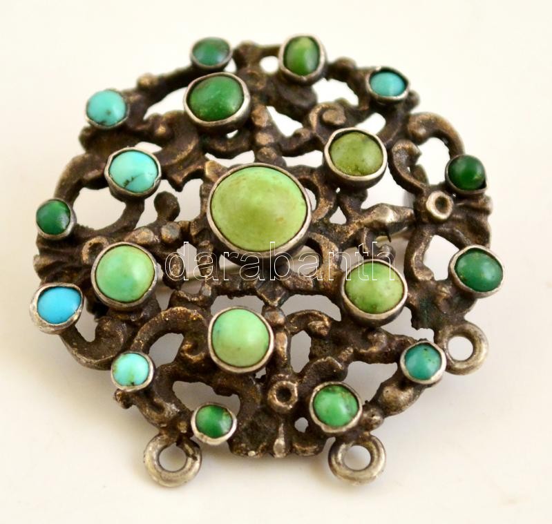 Ezüst(Ag) bross türkizdíszítéssel, jelzés nélkül, hiányos, 2,5×2,5 cm,...