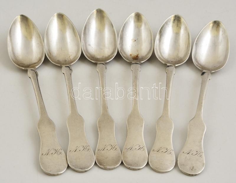 Ezüst(Ag) monogramos teáskanalak, 6 db, jelzett, h: 15,5 cm, nettó: 18...