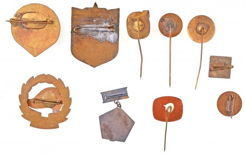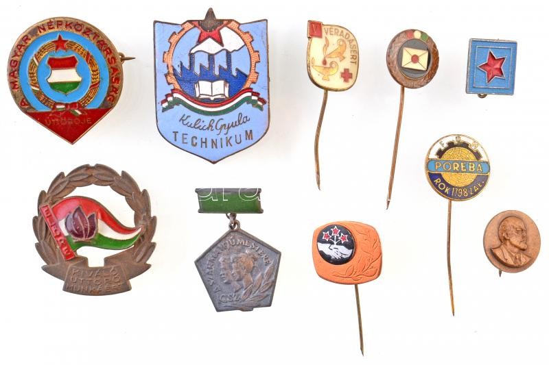 10db-os vegyes magyar jelvény és kitűző tétel, közte "Kulich Gyula Technikum", "Kiváló Úttörő Munkáért" T:2,2- zománchiány,tűhiány