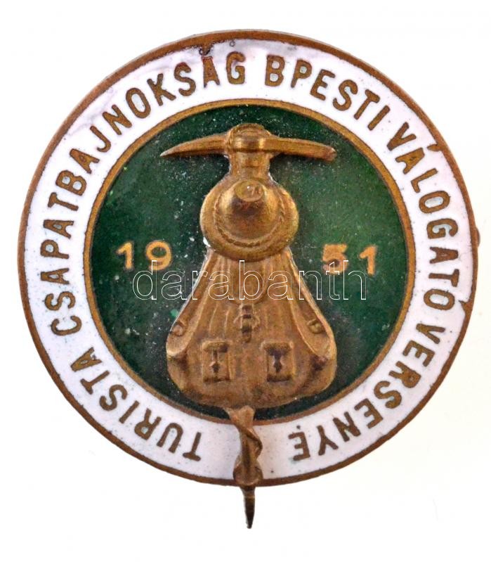 1951. "Turista Csapatbajnokság Bpesti Válogató Versenye" zománcozott fém jelvény (26mm) T:2