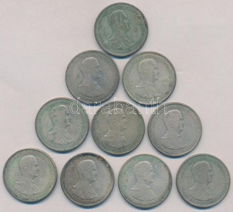 1930. 5P Ag "Horthy jobbra" (10x) T:2-,3 patina, karc
