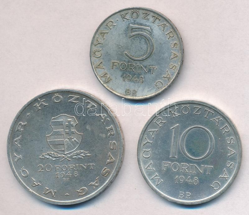 1948. 5Ft Ag "Petőfi" + 10Ft Ag "Széchenyi" + 20Ft Ag "Táncsics" - "Szabadságharc sor" T:1-,2 kis patina