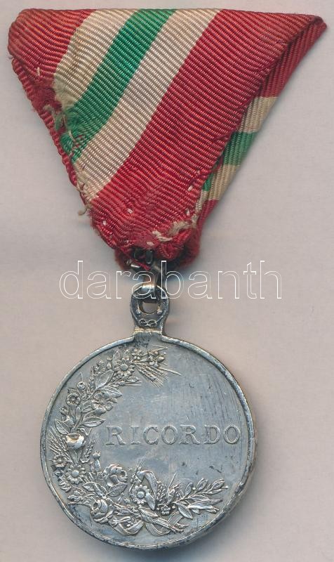 Description: Olaszország 1902. "A Királyi Ház emlékére érem" ezüstözött fém kitüntetés szalagon, replika T:2 kopás