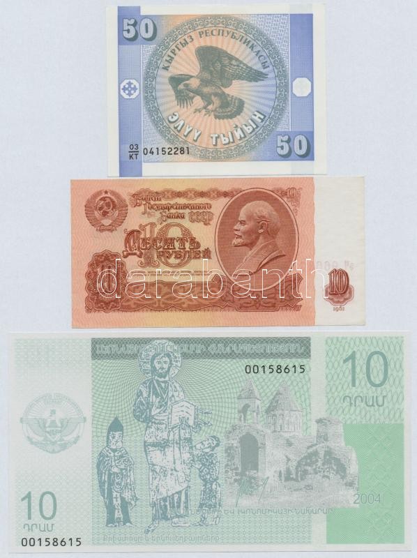 Mixed: Nagorno-Karabah 2004. 10 Dram + Kyrgyzstan 1993. 50 Tyiyn + Soviet Union 1961. 10 Rubles C:UNC,XF