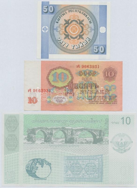 Vegyes: Hegyi-Karabah 2004. 10D + Kirgizisztán 1993. 50T + Szovjetunió 1961. 10R T:I,II