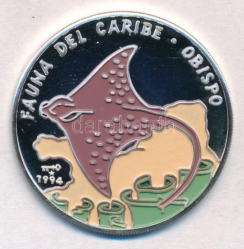 Cuba 1994. 10 Pesos Ag "Spotted Eagle Ray" reverse multicolor painted C:PP