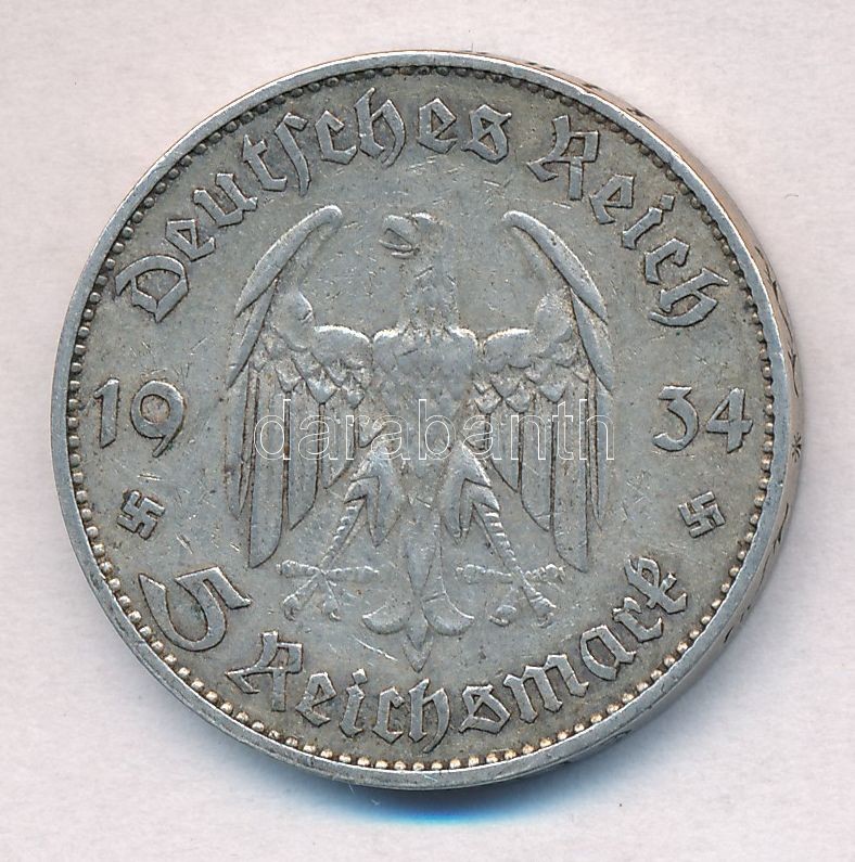 Német Harmadik Birodalom 1934J 5M Ag "Náci hatalom első évforduló... https://www.darabanth.com/en/322-Online-auction/322.0/Numismatics/Worldwide-silver-and-metal-coins~2500013/Nemet-Harmadik-Birodalom-1934J-5M-Ag-Naci-hatalom-elso-evforduloja-T2-2--German-Third-Reich~II1785883