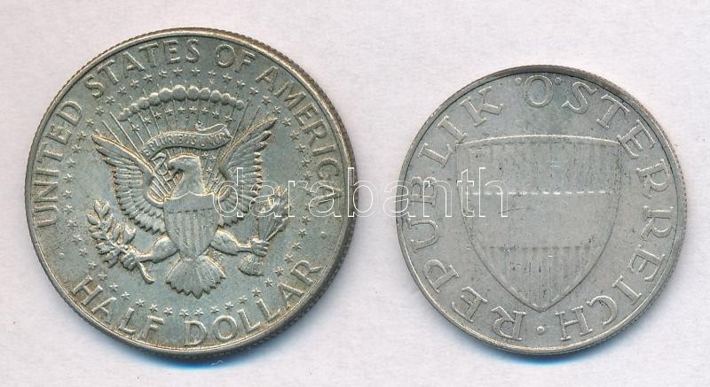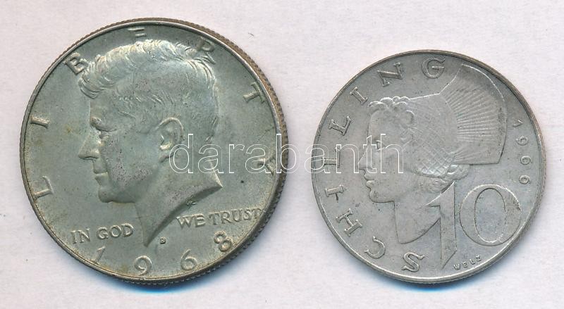Description: Vegyes: Amerikai Egyesült Államok 1968D 1/2$ Ag "Kennedy" + Ausztria 1966. 10Sch Ag T:2