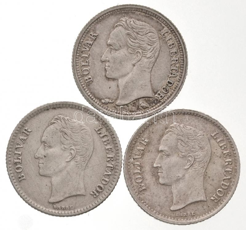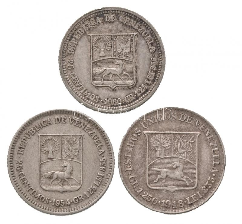 Venezuela 1948-1960. 25 Centimos Ag (3xdiff) C:AU,XF