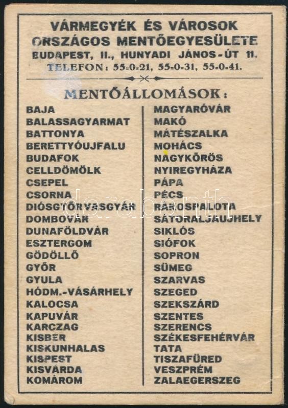 1934 Bp., Vármegyék és Városok Országos Mentőegyesülete által kiadott ...