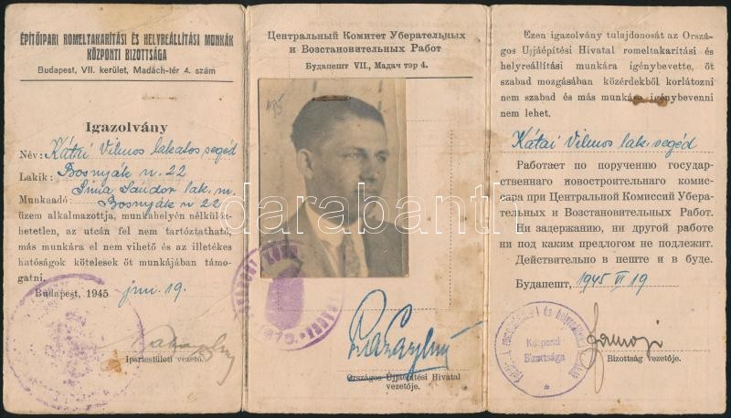 1945 Bp., Építőipari Romeltakarítás és Helyreállítási Munkák Központi ... https://www.darabanth.com/en/322-Online-auction/322.0/Other-collectibles/Documents~500016/1945-Bp-Epitoipari-Romeltakaritas-es-Helyreallitasi-Munkak-Kozponti-Bizottsaga-altal-~II1784774