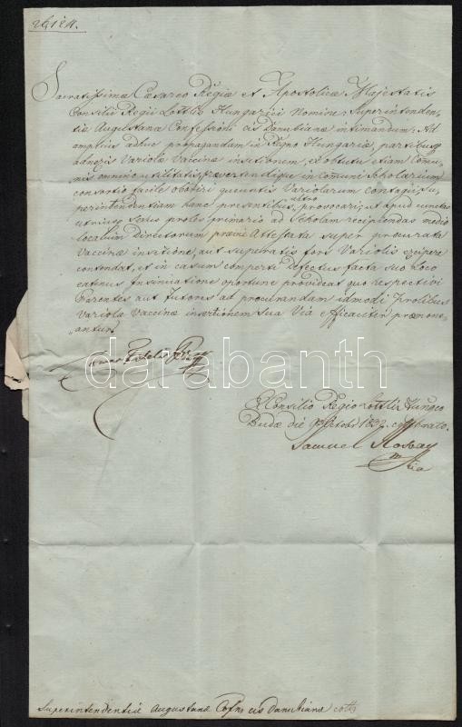 1833 VöröskÅ‘i gróf Pálffy Fidél (1788-1864) tárnokmester, fÅ‘kancellár, árva megyei fÅ‘ispán saját kézzel aláÃrt levele hivatalos ügyben, papÃrfelzetes viaszpecséttel és Ilosvay Sámuel (1775- 1836) helytartósági titoknok, Ãró és földbirtokos aláÃrásával