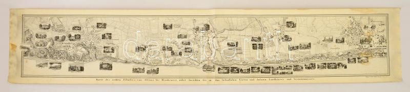 cca 1860-1870 Elba jobb partjának térképe Altonától Blankenese-ig. Karte des rechten Elbufers von Altona bis Blankenese, nebst Ansichten der an ihm befindlichen Gärten und Anlagen, Landhäuser und Vergnügungsorte. Hamburg, Ch. Fuchs, német nyelven, eredeti sérült tokban, hajtásnyommal, 14x81 cm./ Map of the right bank of the Elbe from Altona to Blankenese. Hamburg, Ch. Fuchs, in German language, in damaged original box, 14x81 cm.