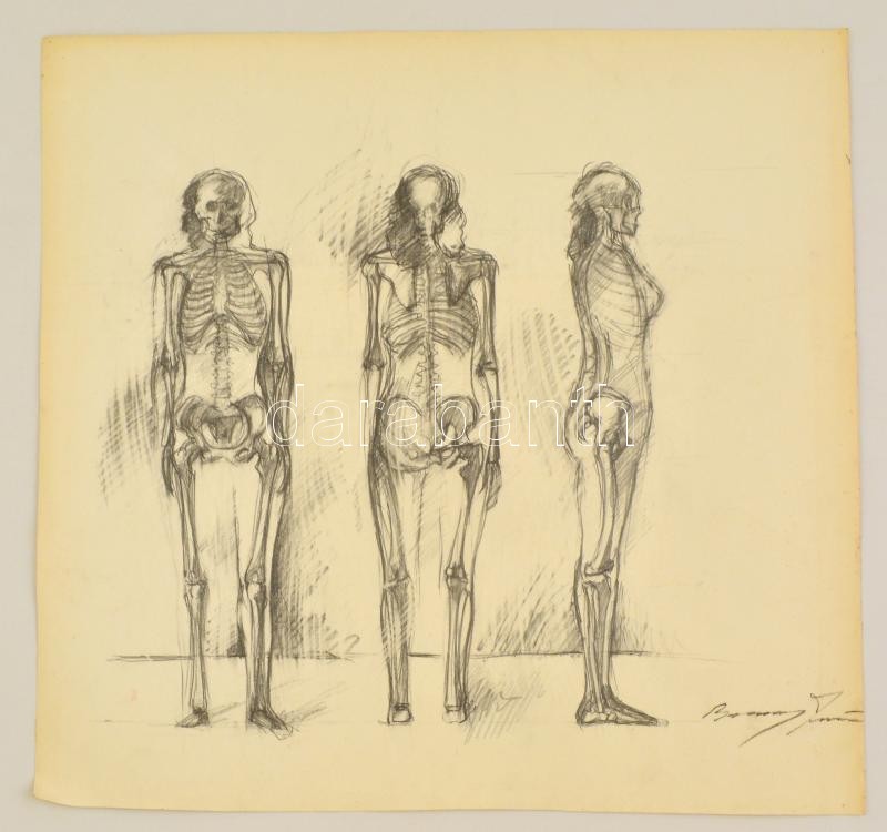 Barcsay jelzéssel: Csontváz tanulmány. Szén, papír, 50×50 cm