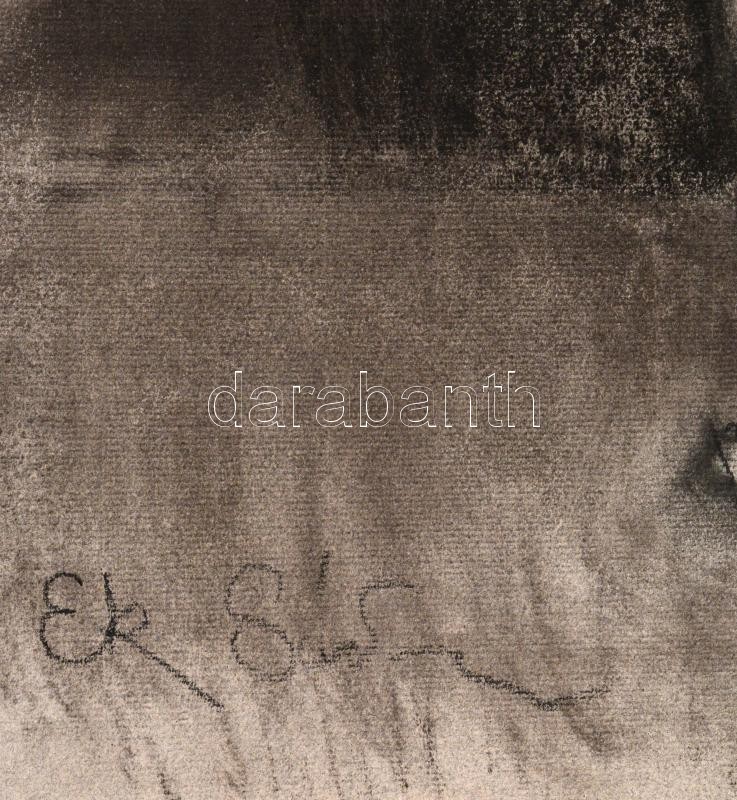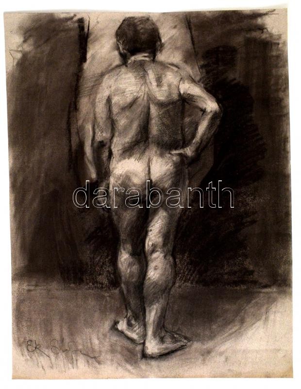 Ék jelzéssel: Férfi akt háttal, szén, papír, 65×50 cm