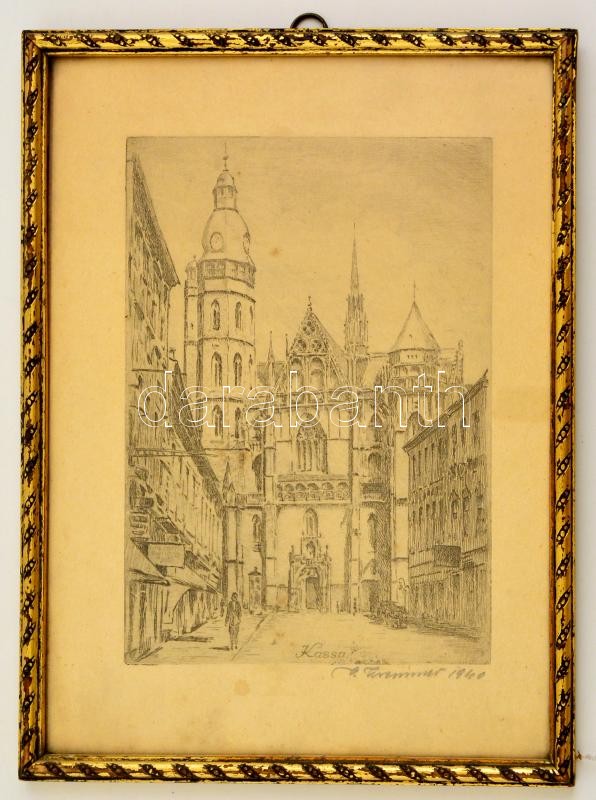 Kremmer jelzéssel: Kassa. Rézkarc, papír, jelzett, üvegezett keretben,...