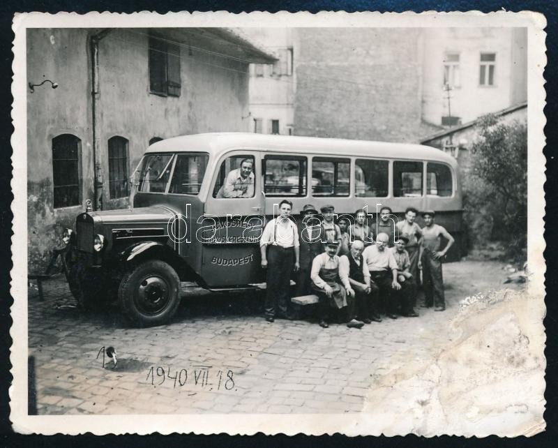 1940 Távolsági személyszállítás autóbusszal, Rákoshegy-Rákoskeresztúr-Budapest, fotó, foltos, 8,5×11 cm