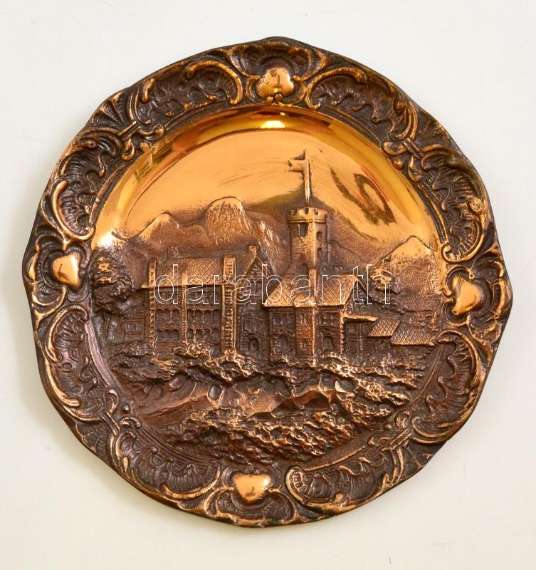 Hegyi városkát ábrázoló réz fali dombormű 19 cm