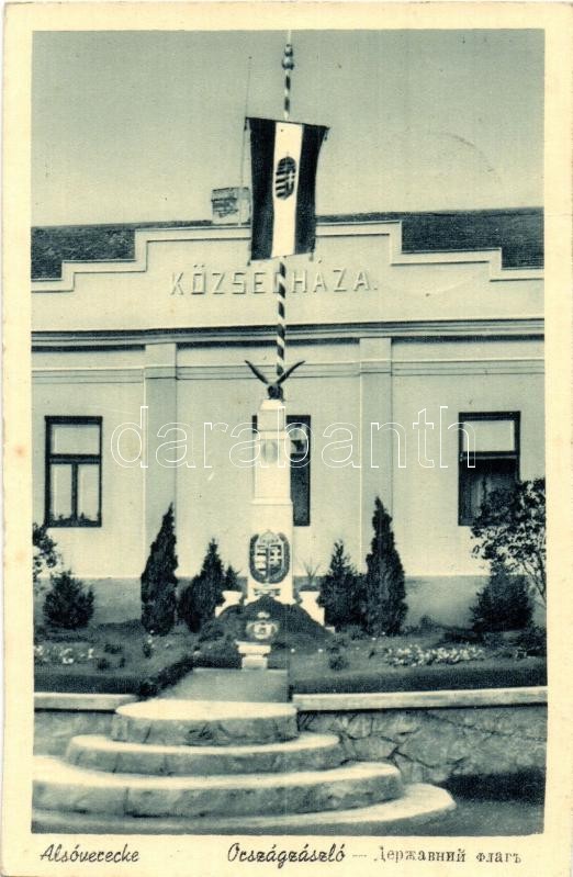 Description: Alsóverecke, Niznije Verecki, Nizsnyi Vorota, Nyzhni Vorota; Országzászló, Községháza, Magyar címer. Verchovina Szövetkezet kiadása / Hungarian flag and coat of arms, town hall