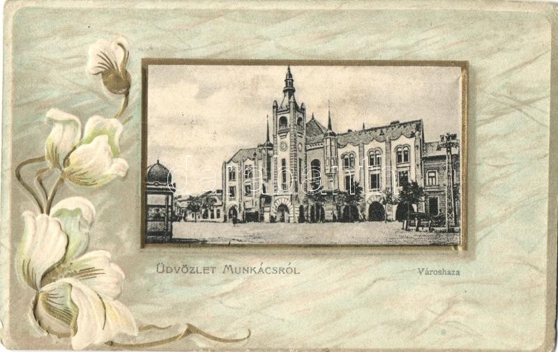 https://www.darabanth.com/en/322-Online-auction/322.0/Postcards/Carpathian-Ukraine~2000009/Munkacs-Mukacheve-Mukacevo-Varoshaza-Viragos-szecesszios-dombornyomott-litho-keret-Kiadja-~II1787119