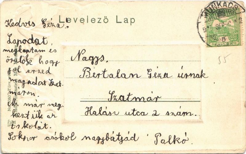 Munkács, Mukacheve, Mukacevo; Városháza. Virágos szecessziós dombornyomott litho keret, Kiadja Grünstein Mór No. 6060. / town hall. Art Nouveau, floral, Emb. litho frame (EK)