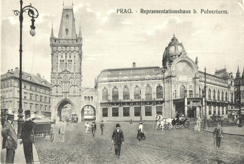 Praha, Prag; Repraesentationshaus bei Pulverturm / tower, square, town...