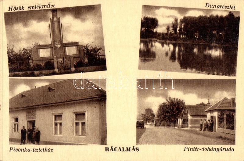 Rácalmás, Hősök emlékműve, magyar címer, Duna, Pivonka üzletház, Pintér dohányáruda