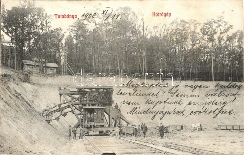 Tatabánya, Kotrógép, iparvasút, munkások (EK)