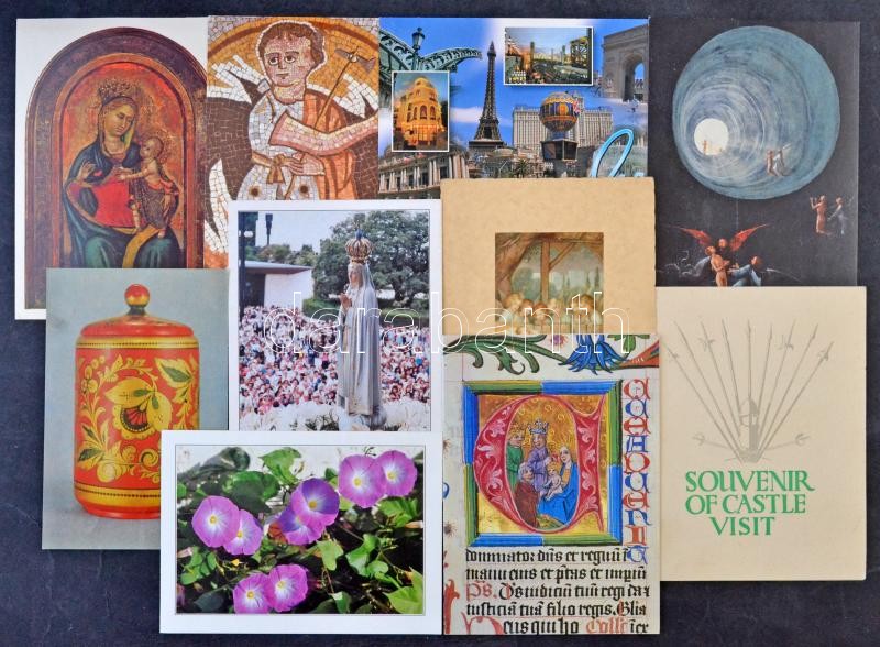 Cipősdoboz tele modern külföldi, főleg francia képeslapokkal, területenként szétválogatva. Érdekes, szép anyag!