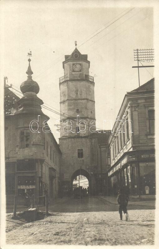 Trencsén, Trencín; Várostorony, utca, Weisz, Ferdinand Rybnicek és div...