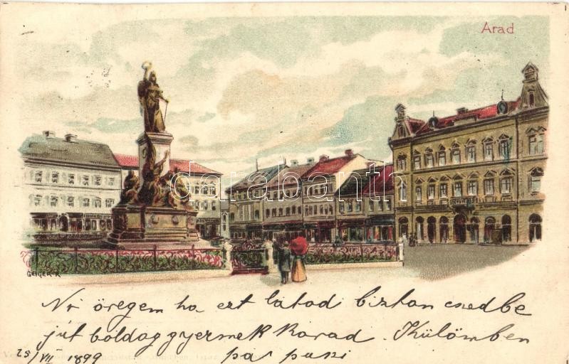 1899 Arad, Vértanú szobor / martyrs' statue, monument, street view, Art Nouveau, litho