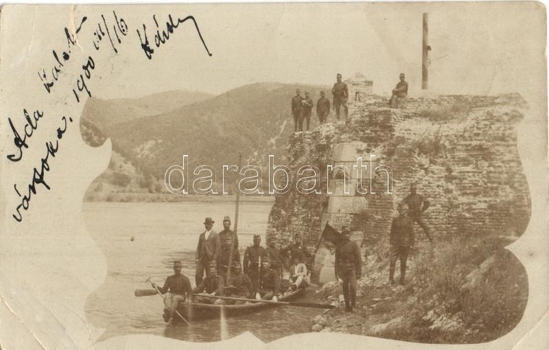 1900 Ada Kaleh várfoka, katonák csoportképe csónakban / castle, K.u.K. soldiers group photo (r)