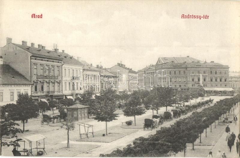Arad, Andrássy tér, Szálloda és vendéglő a Három Királyhoz, Verbos A. ...