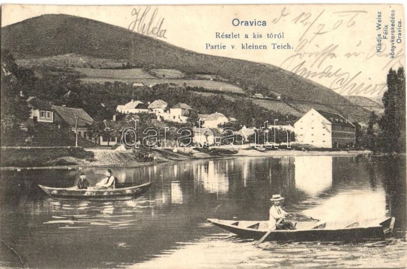 Oravicabánya, Oravita; Részlet a kis tóról, csónakázók. Kiadja Weisz Félix / Partie v. kleinen Teich / lake, rowing boats (EK)