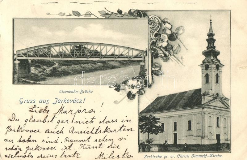 1899 Árkod, Jarkovatz, Jarkovác; Eisenbahn-Brücke, Serbische gr. or. C... https://www.darabanth.com/en/322-Online-auction/322.0/Postcards/Vojvodina~2000011/1899-Arkod-Jarkovatz-Jarkovac-Eisenbahn-Brucke-Serbische-gr-or-Christi-Himmelf-Kirche-Va~II1783418