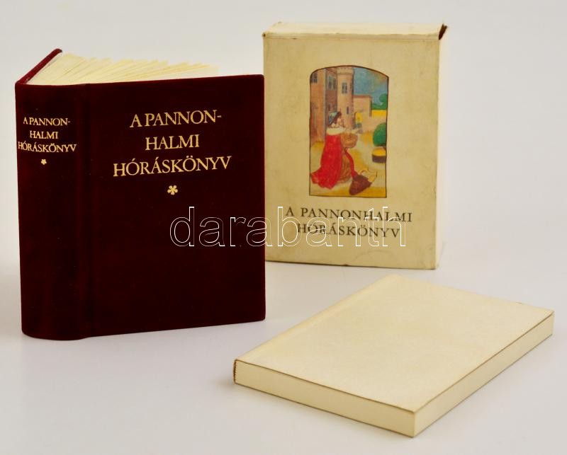 A pannonhalmi hóráskönyv. Bp., 1982, Európa - Helikon. Törpekönyv, hasonmás kiadás, velúrkötésben, kísérőtanulmánnyal (külön kötetben), papír védőtokban, jó állapotban.