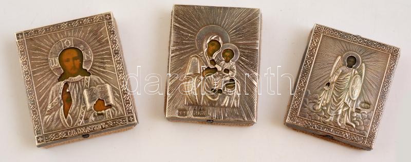 3 db orosz ezüst mini ikon. 84 zolotniki jelzéssel / 3 antique Russian...