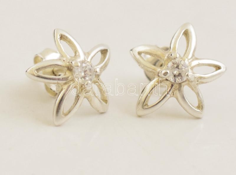 Ezüst (Ag) apró kővel díszített virágos fülbevalópár, jelzett, d: 1,2 ...