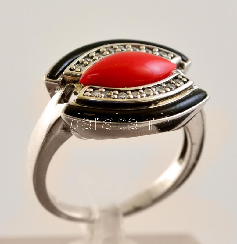 https://www.darabanth.com/en/323-Online-auction/323.0/Jewellery/Jewellery~500030/Ezust-Ag-gyuru-piros-kovel-fekete-zomanc-diszitessel-jelzett-meret-57-brutto-7-gr~II1795012