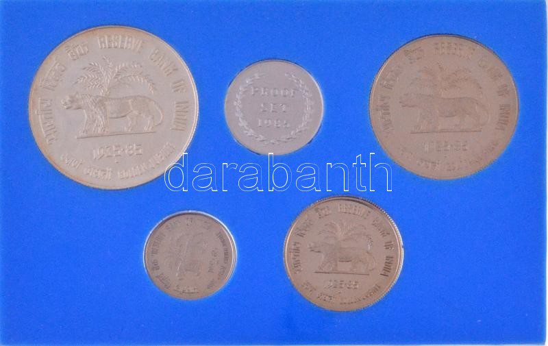 India 1985. 50p-100R (4xklf) forgalmi sor eredeti dísztokban, közte 1985. 100R Ag "Arany Jubileum - Reserve Bank of India" + "India Government Mint" emlékérem T:1 (eredetileg PP)