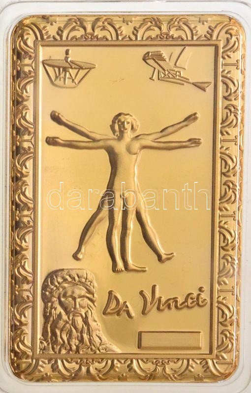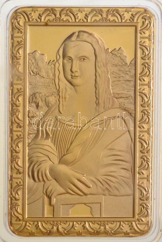 DN "Da Vinci" aranyozott, hátoldalán a Mona Lisát ábrázoló fém plakett T:PP