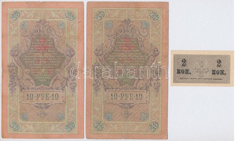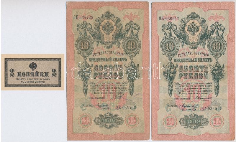 Russian Empire 1909-1912. 1909-1912. 10 Rubles Sign.: Konshin + 1912-1917. 10 Rubles Sign.: Shipov + 1915. 2 Kopeks C:F,VG