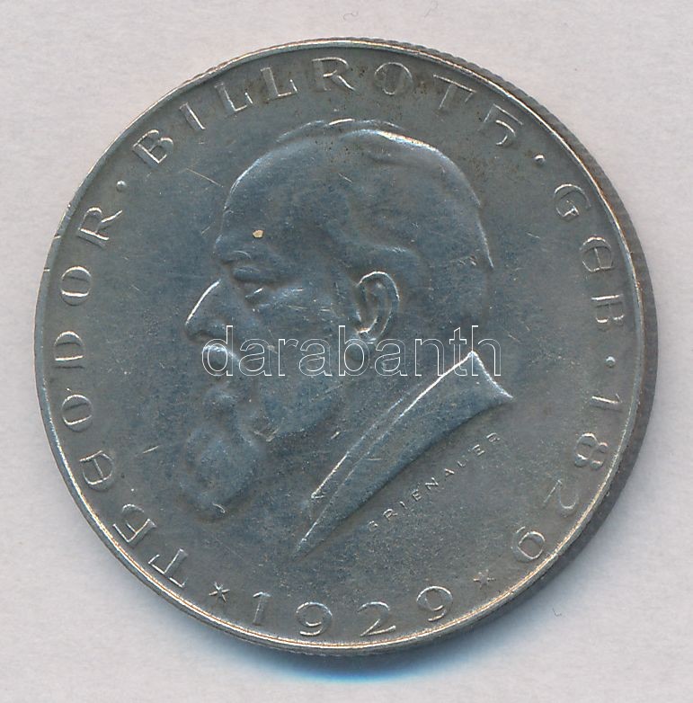 Ausztria 1929. 2Sch Ag "Dr. Theodor Billroth születésének 100. év... https://www.darabanth.com/en/323-Online-auction/323.0/Numismatics/Worldwide-silver-and-metal-coins~2000012/Ausztria-1929-2Sch-Ag-Dr-Theodor-Billroth-szuletesenek-100-evforduloja-T2-patina-Austria~II1776015