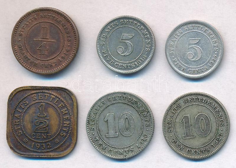 Straits Settlements / Brit gyarmat 1910-1932. 1/4c-10c (6xklf) közte 4...