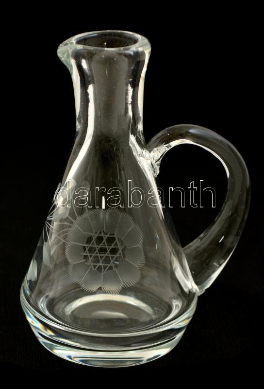 Kis üveg kiöntő, metszett, csiszolt virágmintás motívummal, hibátlan, ...